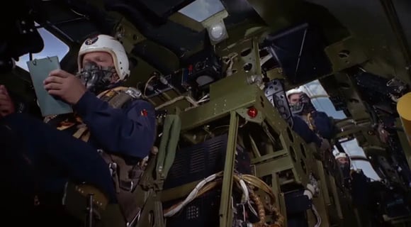 The real stars of the film are the Convair B-36 Peacemaker and the Boeing B-47 Stratojet, both of which get plenty of screen time in all their Cold War glory. The flying sequences are nothing short of stunning, especially in Technicolor, with vast shots of these bombers soaring through the sky like airborne fortresses. The interior shots are equally impressive, showing off the cavernous insides of the B-36 and the cramped, high-tech (for the time) cockpit of the B-47. There’s a level of authenticity here that aviation buffs will eat up, with intricately detailed mockups of navigation stations, bomb bays, and in-flight refueling operations.